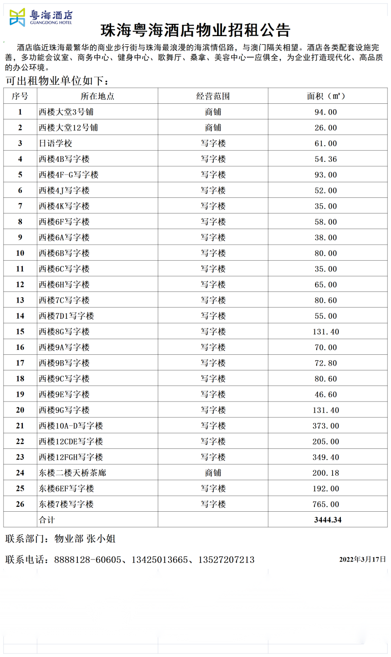 珠海粵海酒店物業(yè)招租公告